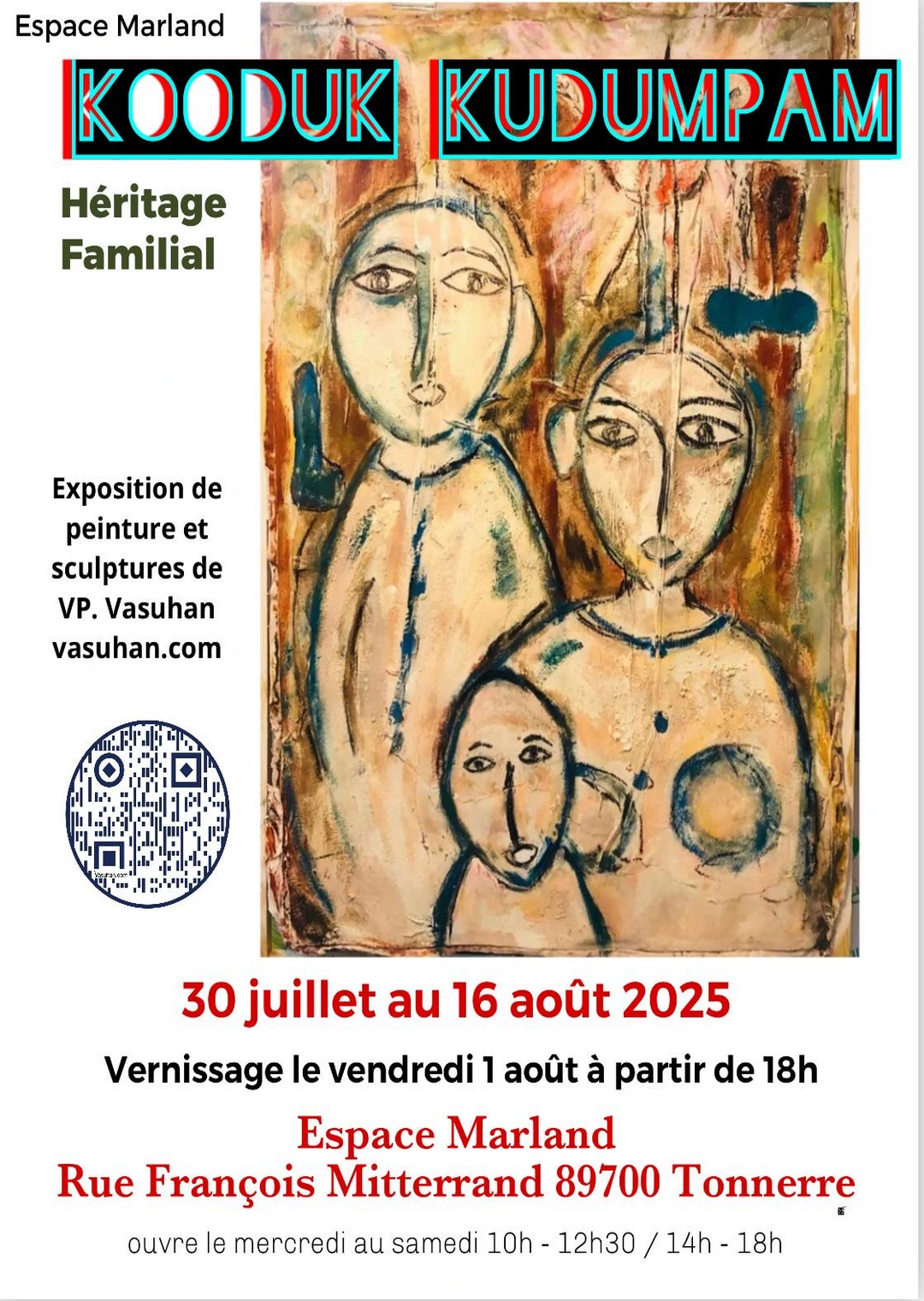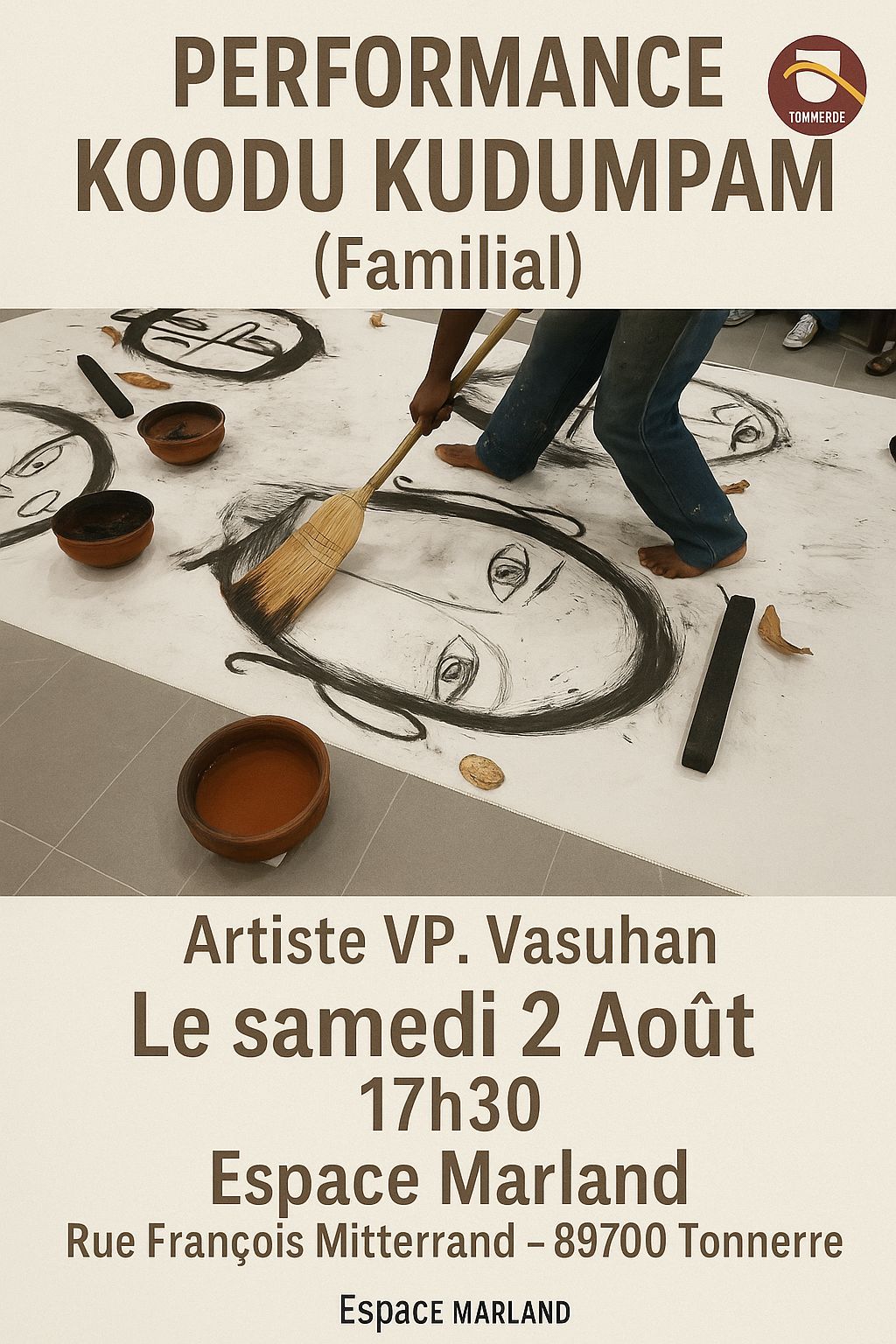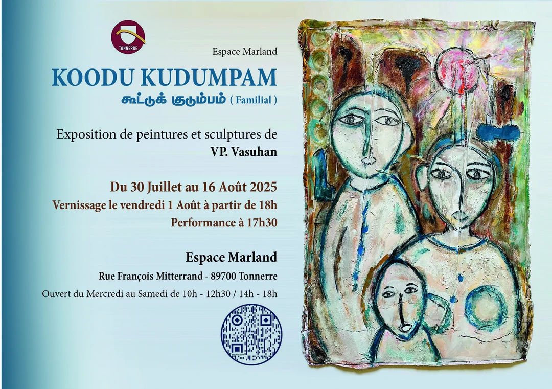 Vasuhan, avec des collaborateurs de toutes générations, tisse gestes, pigments et souvenirs dans une offrande sensorielle où l'argile, le fil, le sable, le curcuma et le charbon évoquent l'appartenance et le lien ancestral.