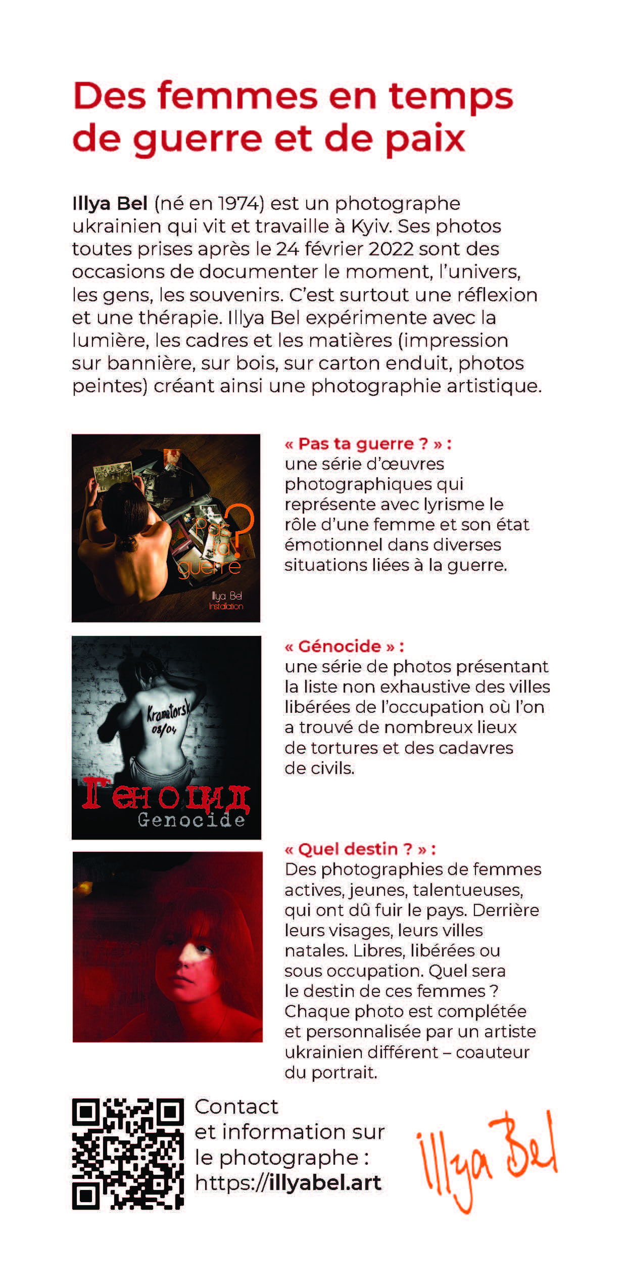 je souhaite mettre à l'honneur la Femme mon sujet de prédilection ses parcours de vie peu importe sa condition sociale, connue et /ou inconnue, ce qui m’intéresse c'est l'histoire que je vais raconter sur chaque portrait réinterprété avec ma propre sensibilité la peinture permet cela ce chemin unique c'est passionnant j'en apprend toujours plus sur l'être en général et sur qui sommes nous dans ce monde ».