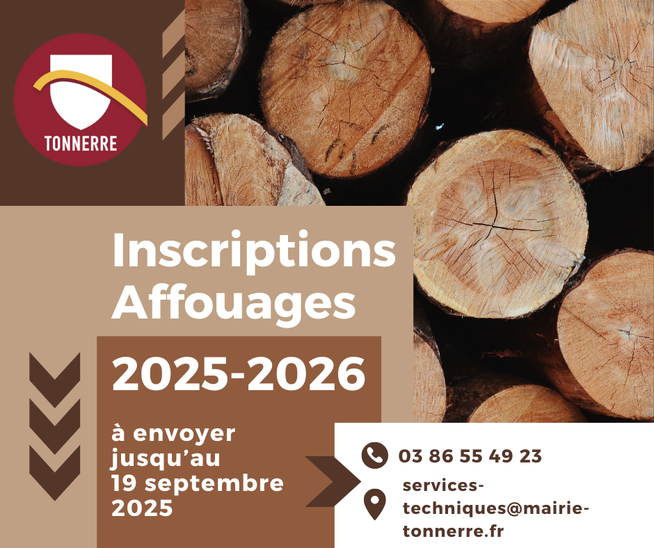 Les inscriptions pour les demandes d’affouages 2025-2026 seront reçues au secrétariat des services techniques de la ville jusqu’au 19 septembre 2025.