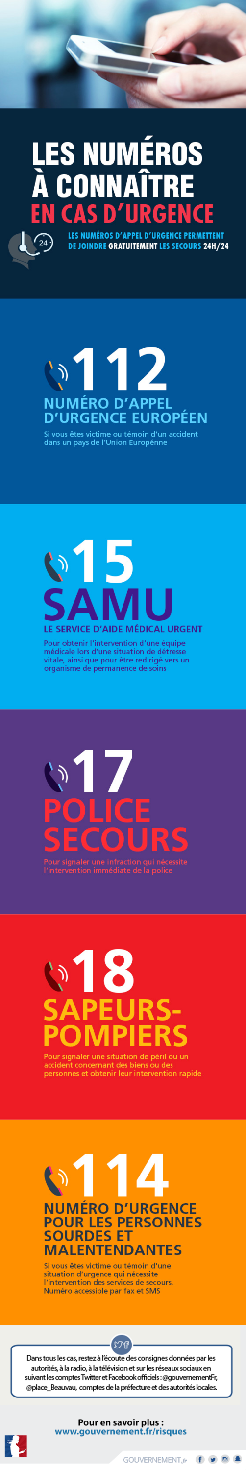 Quels numéros pour quelles situations d'urgence (appels gratuits) ?